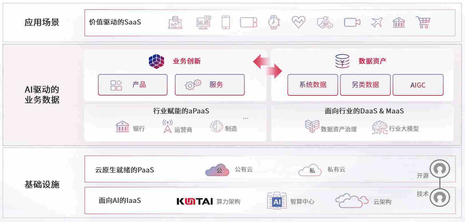 数字时代,,,,围绕企业数字化转型的关键要素,,,,PA视讯集团官网数码开创性的提出数云融合战略和技术体系框架,,,,着力在云原生、、数字原生、、、AI原生和信创产业上架构产品和服务能力,,,为处在不同数字化转型阶段的快消零售、、、汽车、、、金融、、、医疗、、、政企、、教育、、、、运营商等行业客户提供泛在的敏捷IT能力和融合的数据驱动能力,,,构建跨界融合创新的数字业务场景和新业务模式,,,,助力企业级客户建立面向未来的核心能力和竞争优势,,全面推动社会的数字化、、、智能化转型升级。。。。