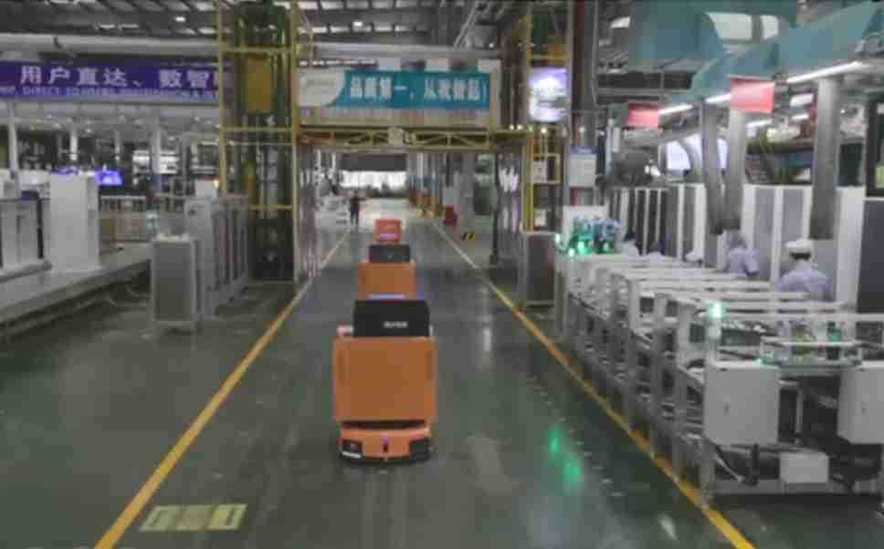 为车载冰箱物流配送打造的智能解决方案,,,包含产中物流通过潜伏举升AMR搬运至线边,,,产后成品物流智能仓储,,,,流程包含产中物流智能齐套入库,,,,线边安灯叫料AMR智能配送至线边,,成品入库、、、、出库,,,,通过无人堆高车机器人,,,,智能仓储管理替代人工作业管理,,,,实现更高存储、、更高效率、、、、更具柔性化的解决方案。。。